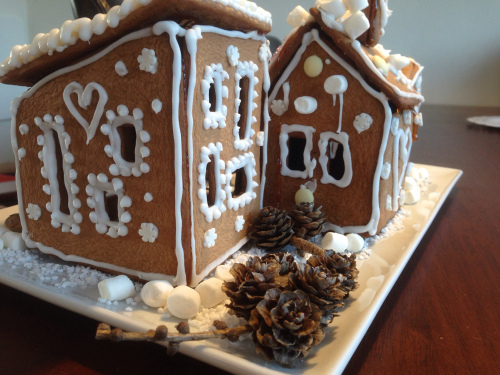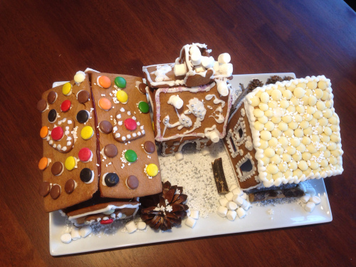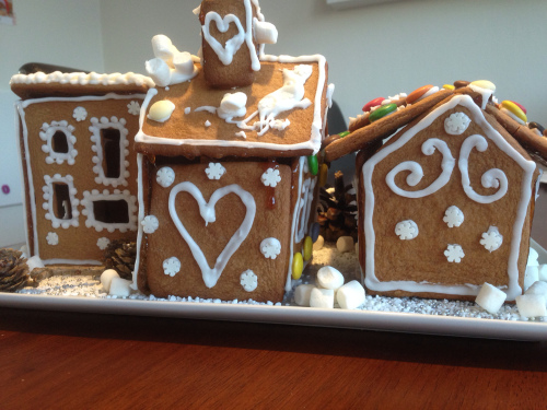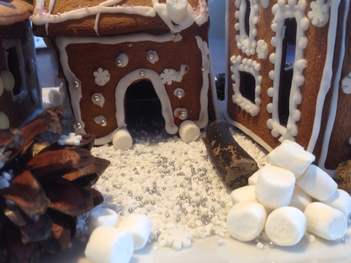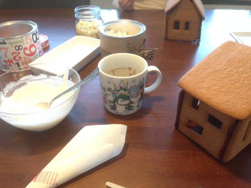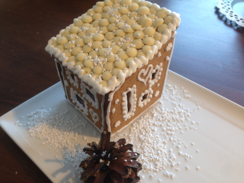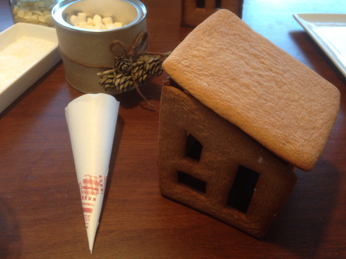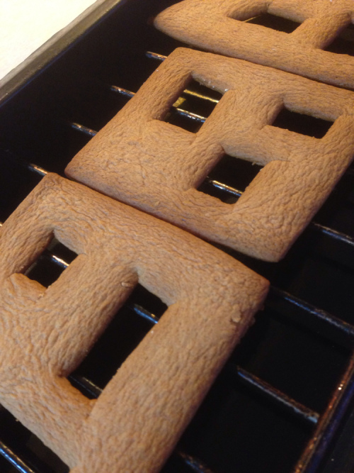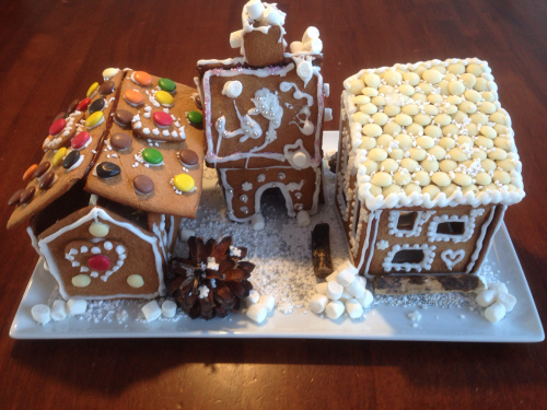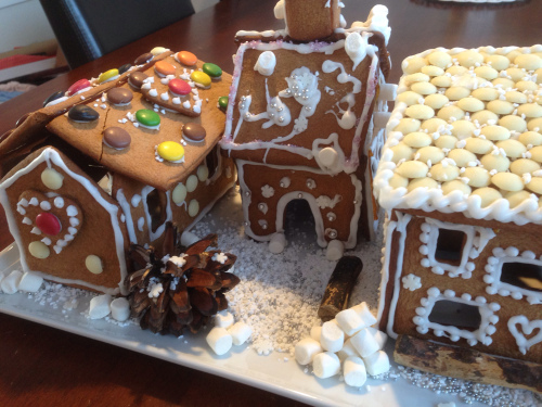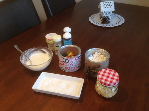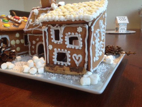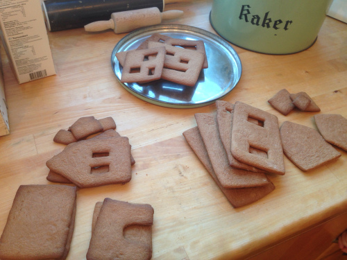 Jeg og Linnéa har bakt pepperkakehus. Vi bruker samme deig som vi bruker til pepperkaker. Svenske ingefærkaker, med en liten ts pepper i :). Oppskriften vi bruker er uten egg og melk, så den er fin for allergikere. Deigen er lett å bake med, også med barn, da kakene helst skal være litt tykke.