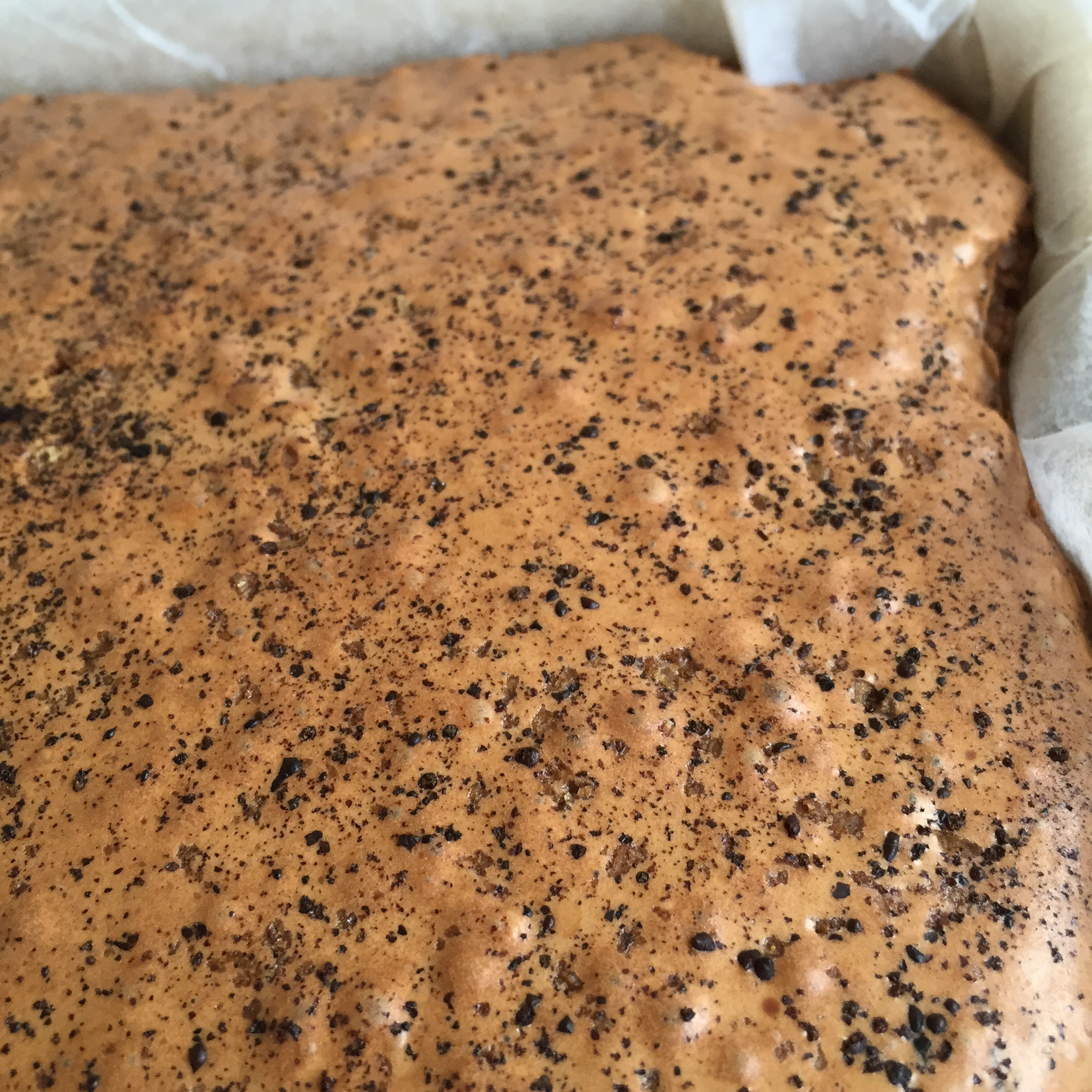 - Kle en form 22x22x5 cm med bakepapir.