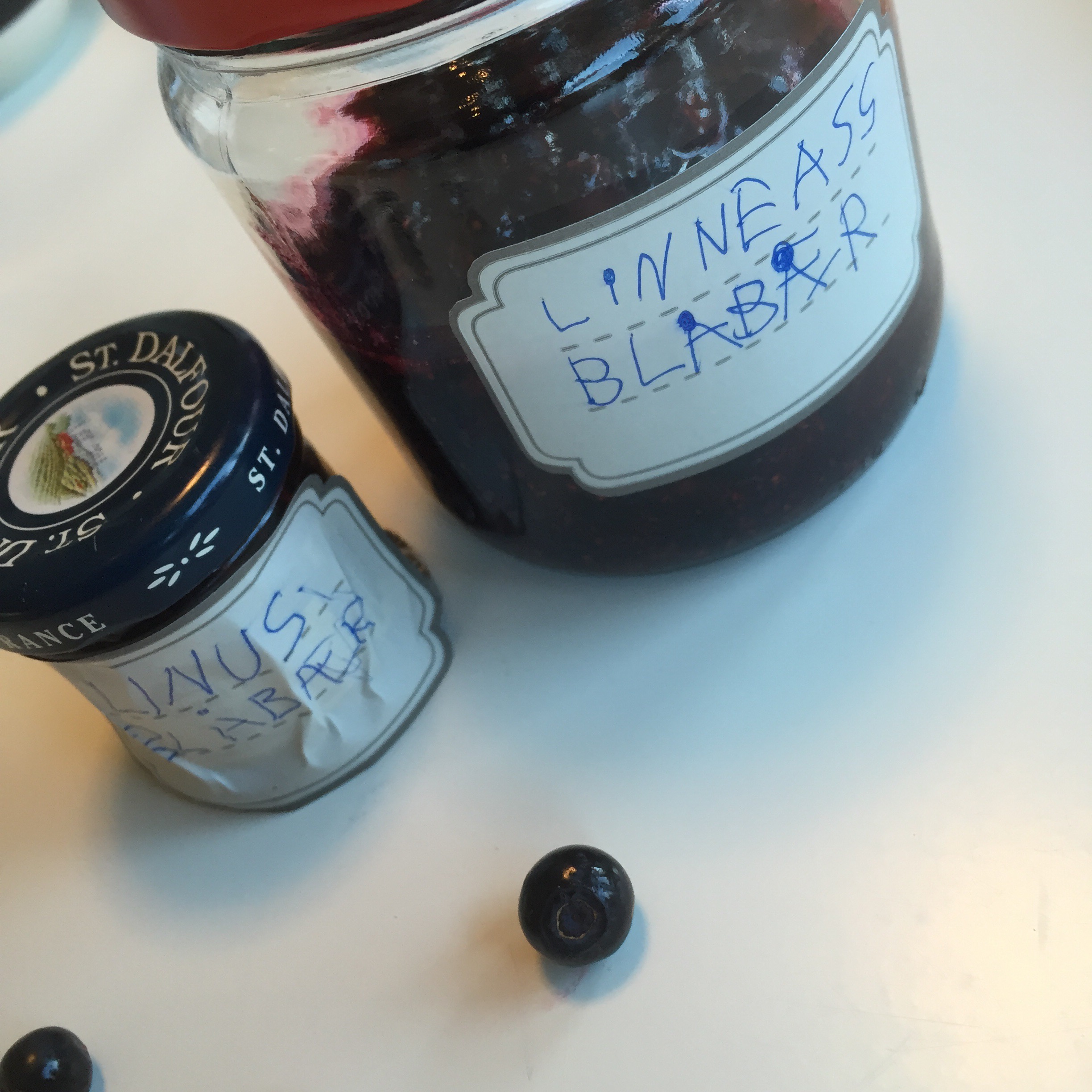 Omsider ble blåbæra moden i Trondheim også. I år har barna lagd sitt eget blåbærsyltetøy av egenplukket bær. Jeg har testet å kjøre bær og sukket i blenderen. Rørt blåbær uten hele bær ble bra det også. Enkelt og veldig kjapt.