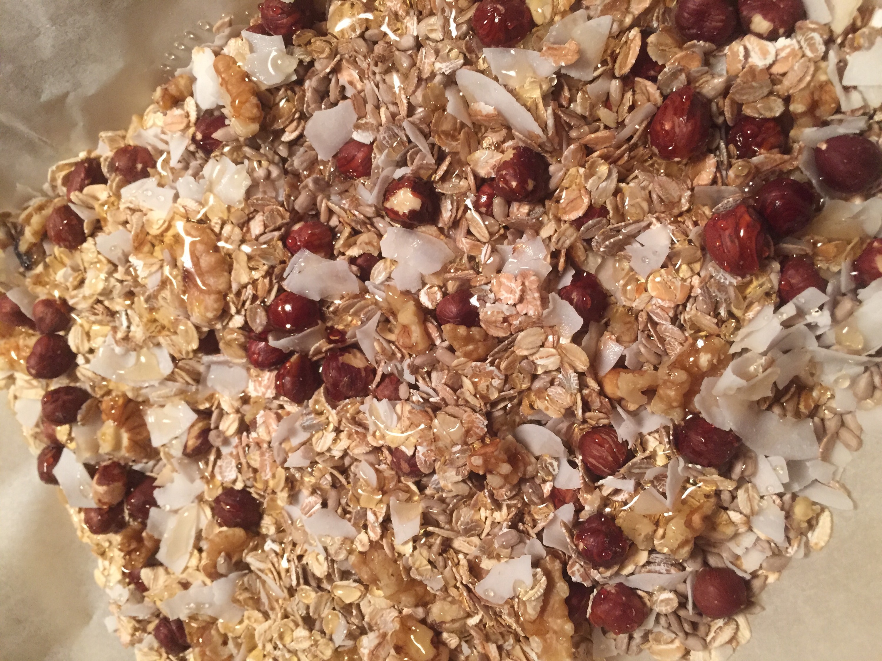 - Bland alt det tørre på en bakepapirkledd langpanne.