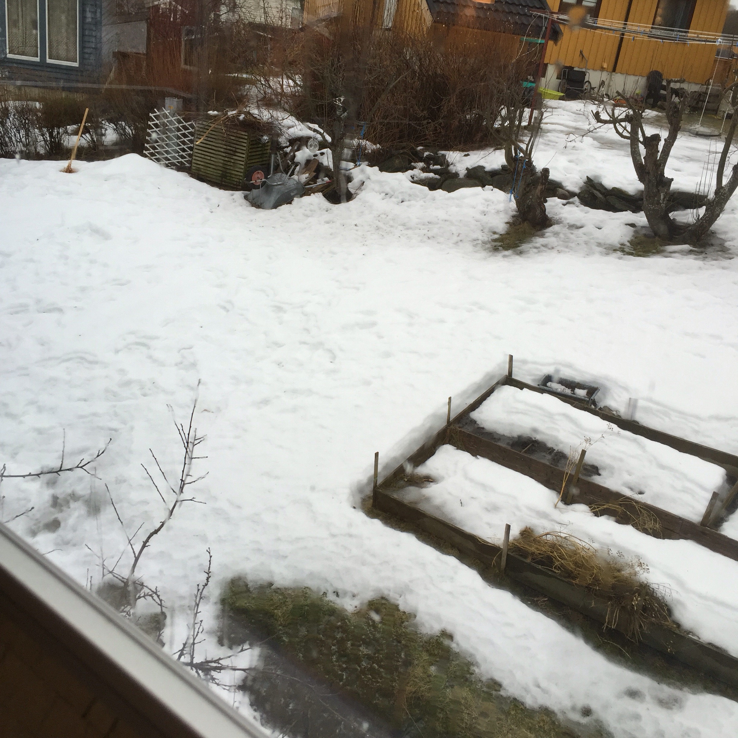 Nå kan snøen bare regne bort for min del. Vi har fått øye på noen snøklokker som gjerne vil fram. La oss håpe det spirer litt mer i hagen til påske.