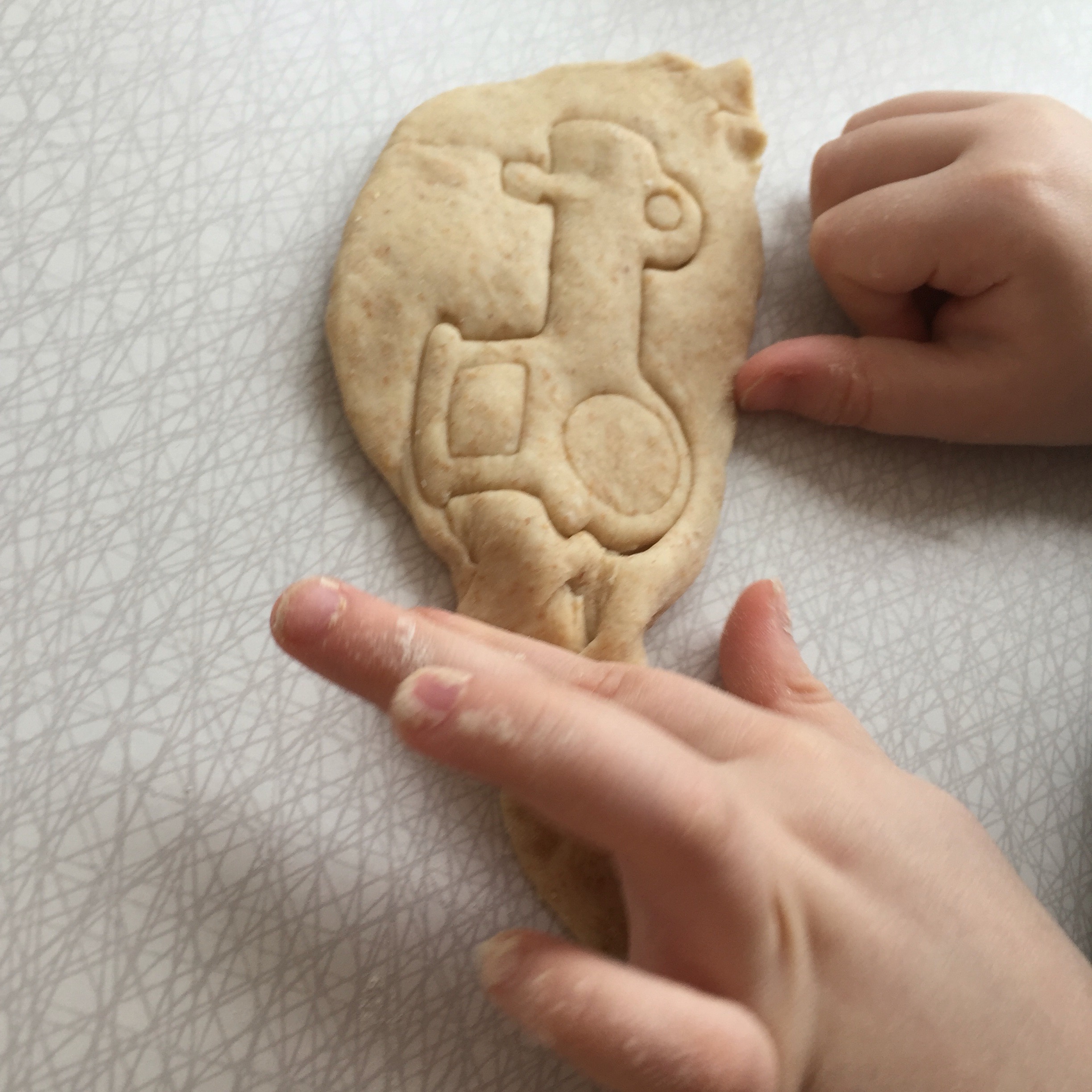 Vi har vinterferie og barna er med på det som er av matlaging, enten det er å dele opp pølser til pølsegrateng eller bake kanelboller til besøket nordfra. Det som er blitt veldig populært her i det siste er å bake sine egne polarbrød og stikke dem ut med pepperkakeformer. Linus digger traktorer, så han gikk for traktorpolarbrød. Disse kan han spise veldig mange av. Så mange at det ikke blir plass til alt lørdagsgodteriet.
