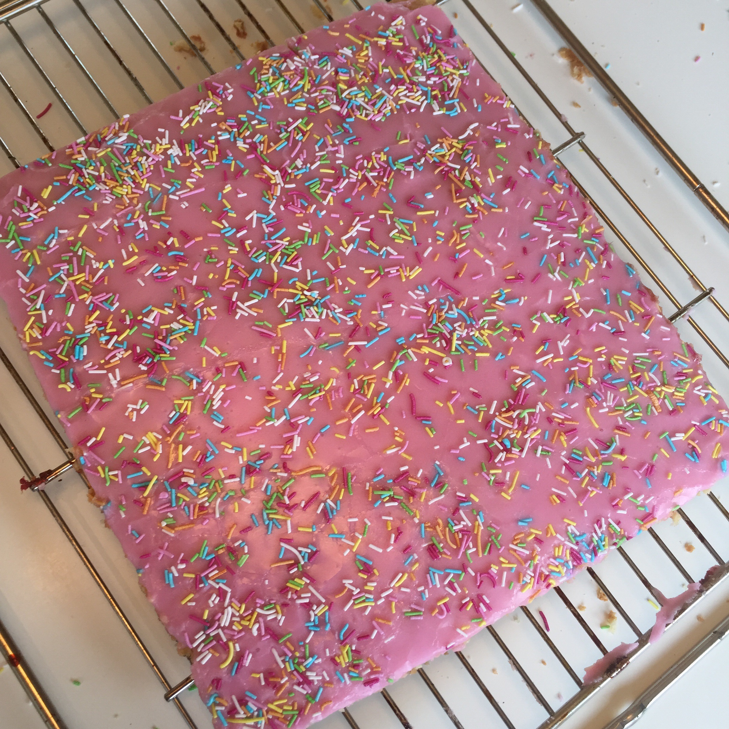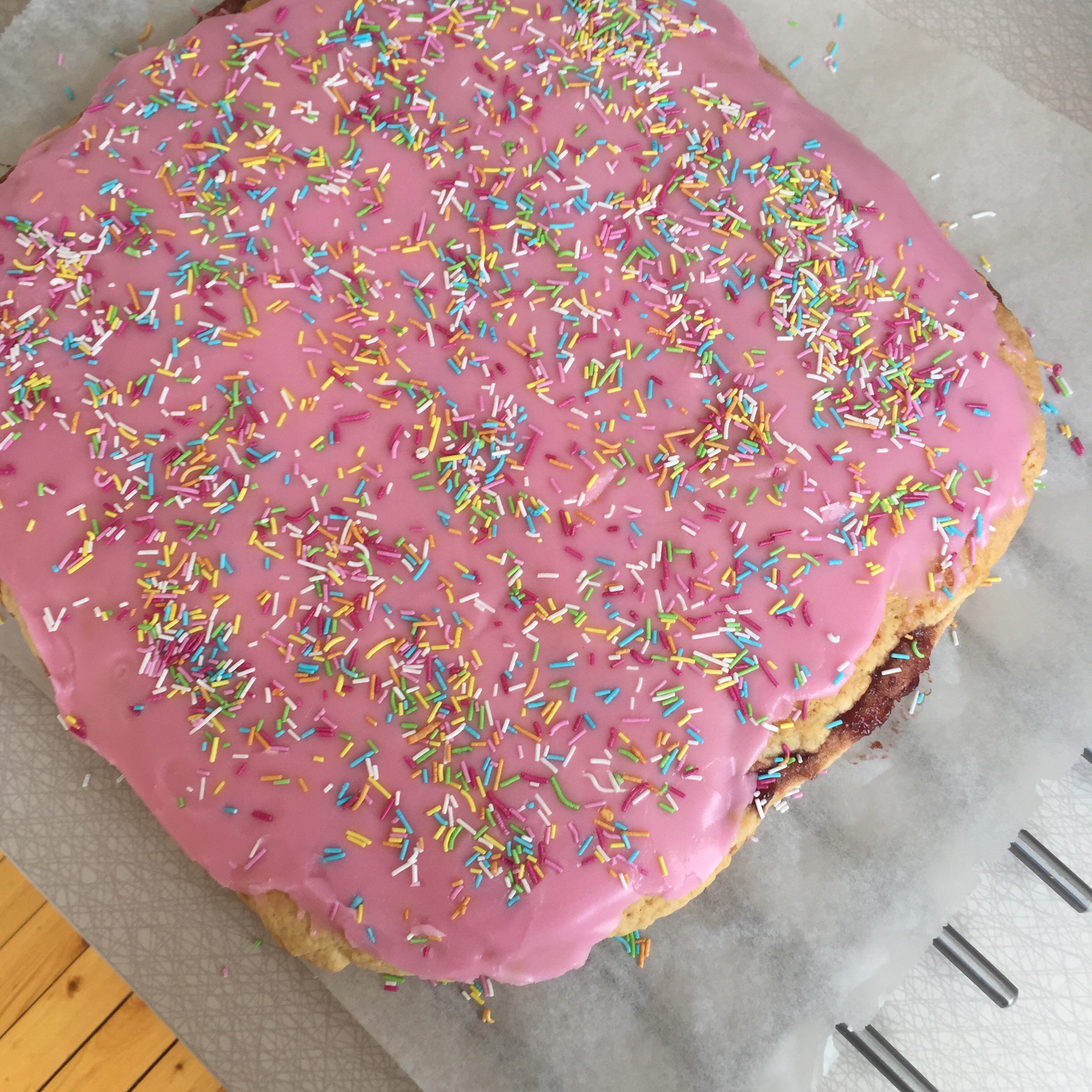 - Lag glasur med melis, vann og konditorfarge og ha dette over før kaka er helt kald.