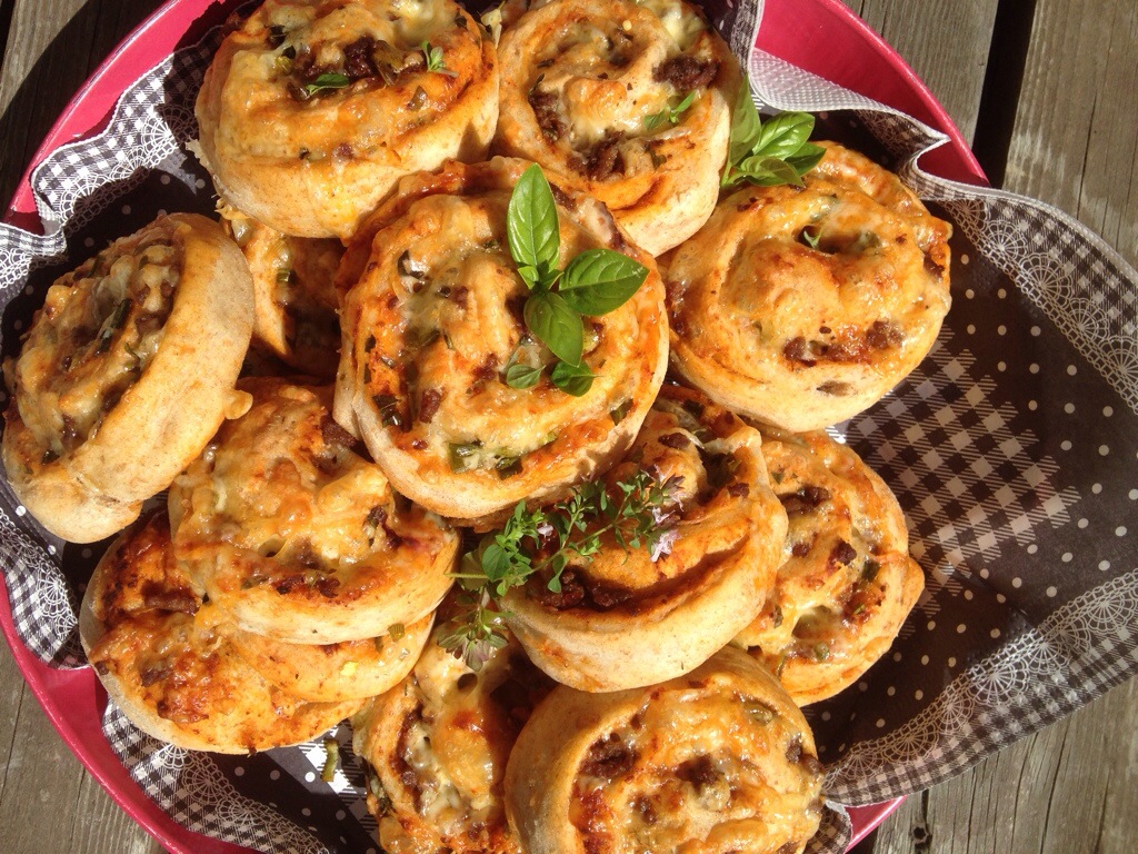 Saftige og gode pizzasnurrer med kjøttdeig og vårløk. Litt sunnere med grov deig. Perfekt som turmat eller i barneselskap. Ingredienser: 1 grov Pizzadeig eller fin pizzadeig 400 g stekt kjøttdeig/karbonadedeig 3 vårløk 300 – 400 g ost Urter, oregano og basillikum pepper Pesto av soltørket tomat Framgangsmåte: Lag pizzadeig. Stek kjøttdeig/karbonadedeig. Kutt opp vårløk og urterFortsett å lese «Grove pizzasnurrer»