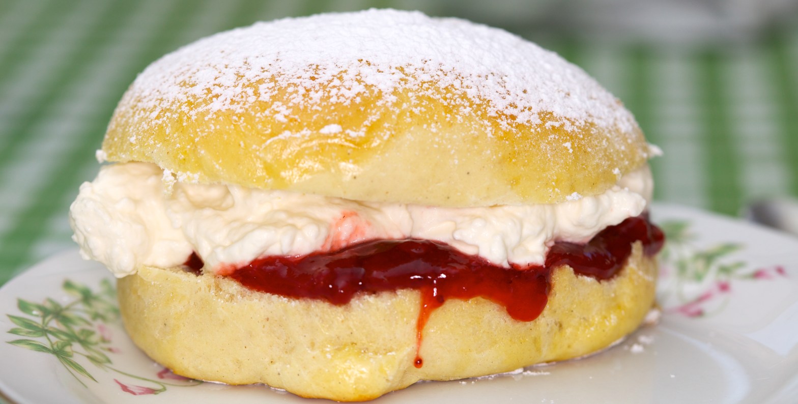 Vannbakkels med syltetøy og krem er et godt alternativ til de vanlige fastelavensbollene.