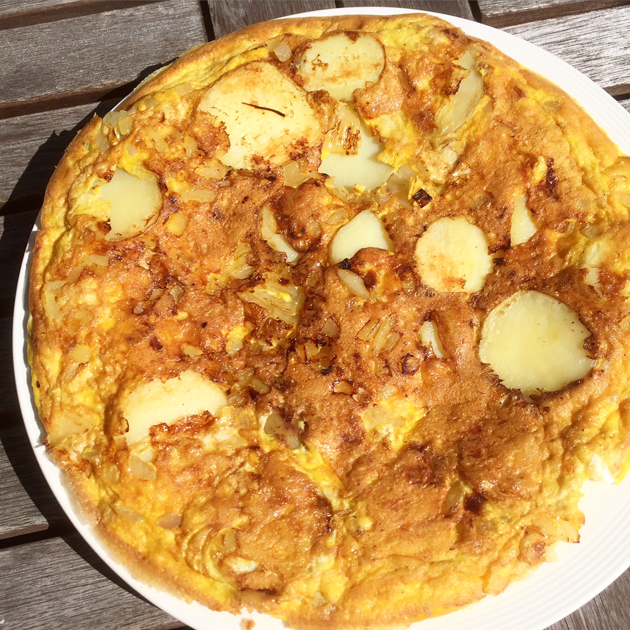 Spansk omelett som serveres til tapas. Vi serverer det gjerne til grillmaten.