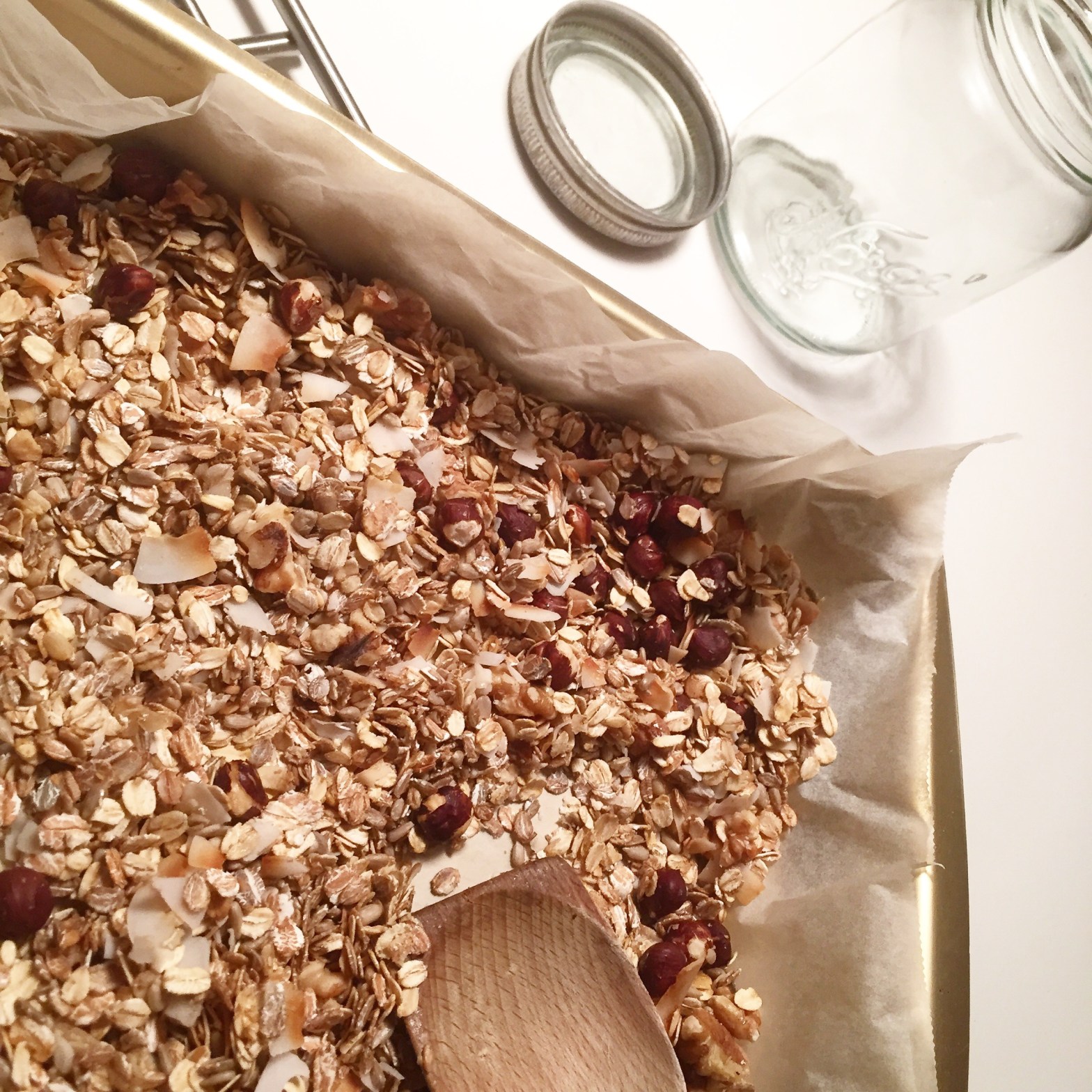 Så enkelt lager du din egen müsli. Ingredienser: 1 dl speltflak 1 dl rugflak 2 dl store havregryn 1 dl kokosflak 1 dl solsikkekjerner 1 dl hasselnøtter 1 dl valnøtter 3 ss flytende honning eller lønnesirup 1 ss nøytral olje Framgangsmåte: Bland alt det tørre på en bakepapirkledd langpanne. Fordel honning og olje jevnt overFortsett å lese «Müsli med urkorn og kokosflak»