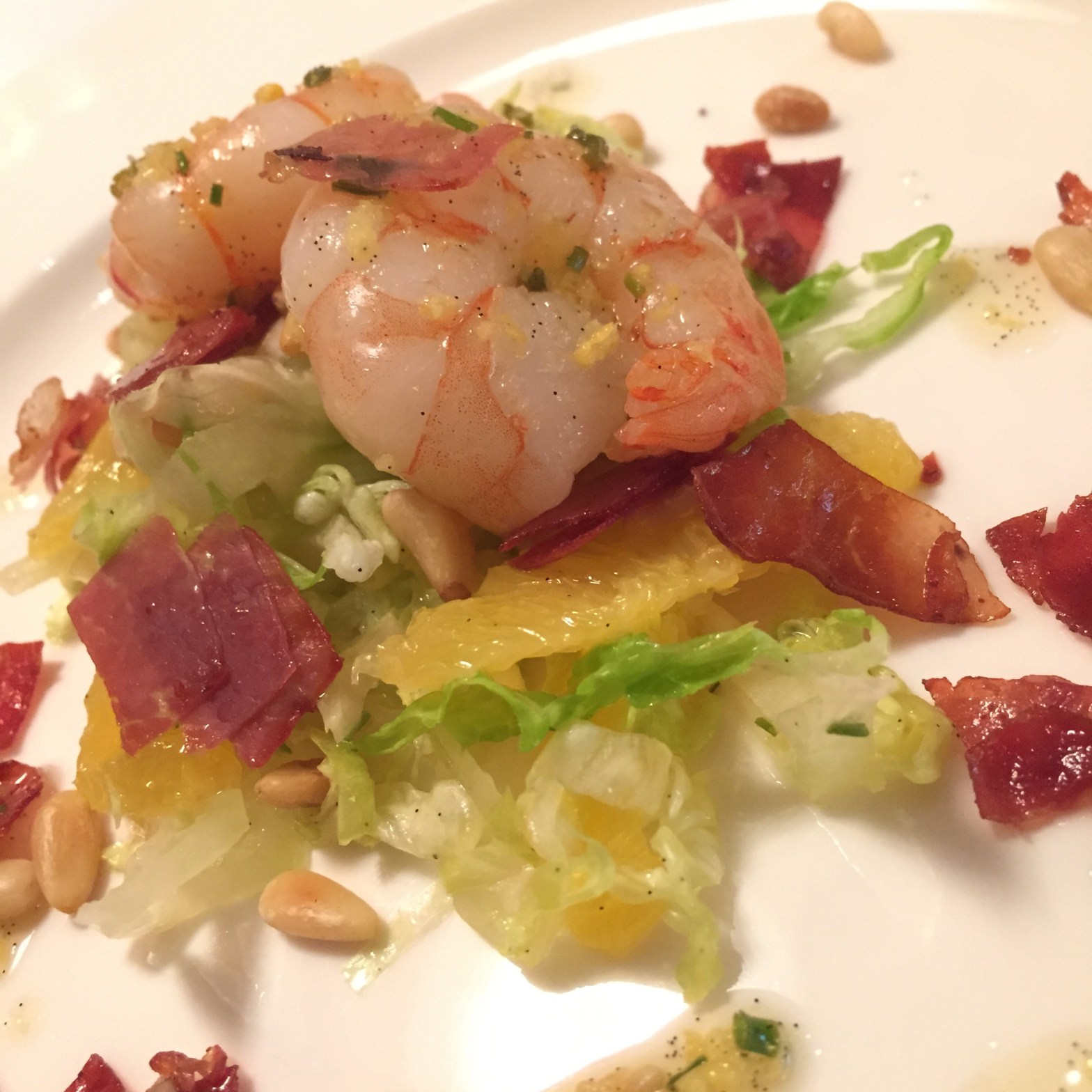 Dette er nok en av de beste forrettene jeg har spist. Scampi kan byttes ut med sjøkreps, kamskjell eller tigerreker. Ingredienser: (4 posjoner) Vaniljeolje: 1 vaniljestang 4 ss nøytral olje 2 ss revet sitronskall 2 ss finhakket gressløk Salat: 1 selleristang 1 appelsin 1 lime 1/2 hjertesalat 8 stk rå scampi olje til pensling Framgangsmåte:Fortsett å lese «Hjertesalat med scampi og vaniljedressing»
